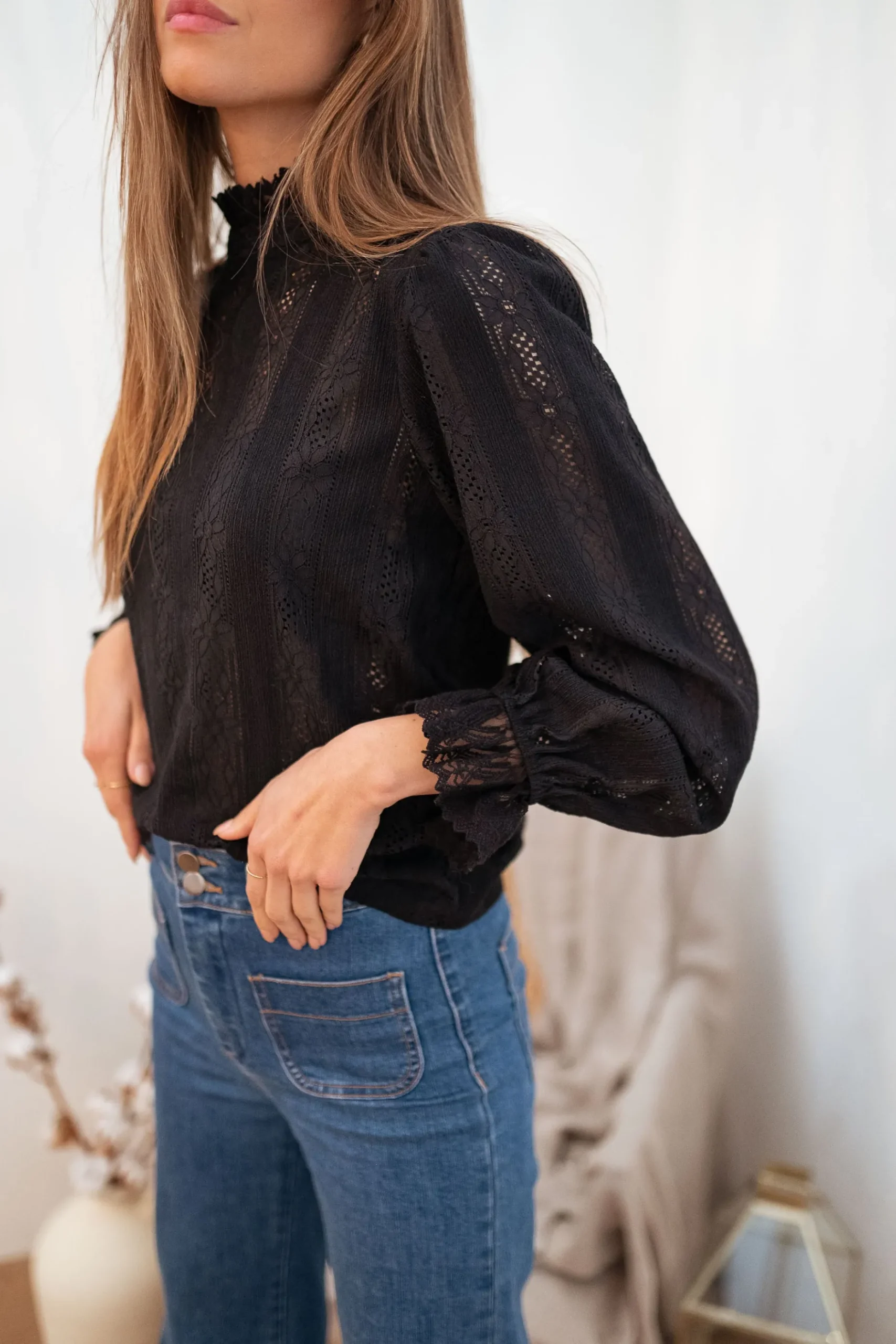 - Col montant en broderie