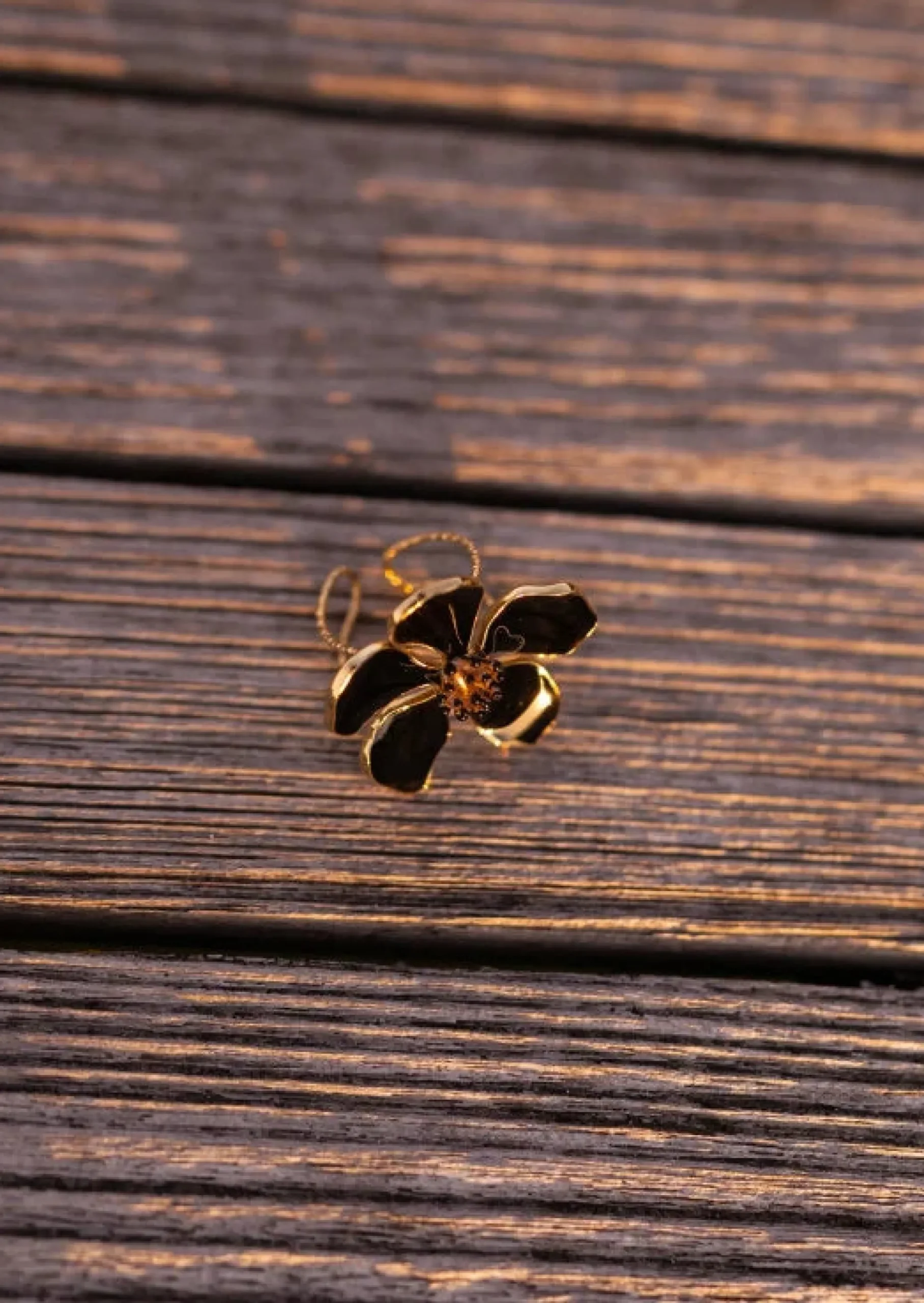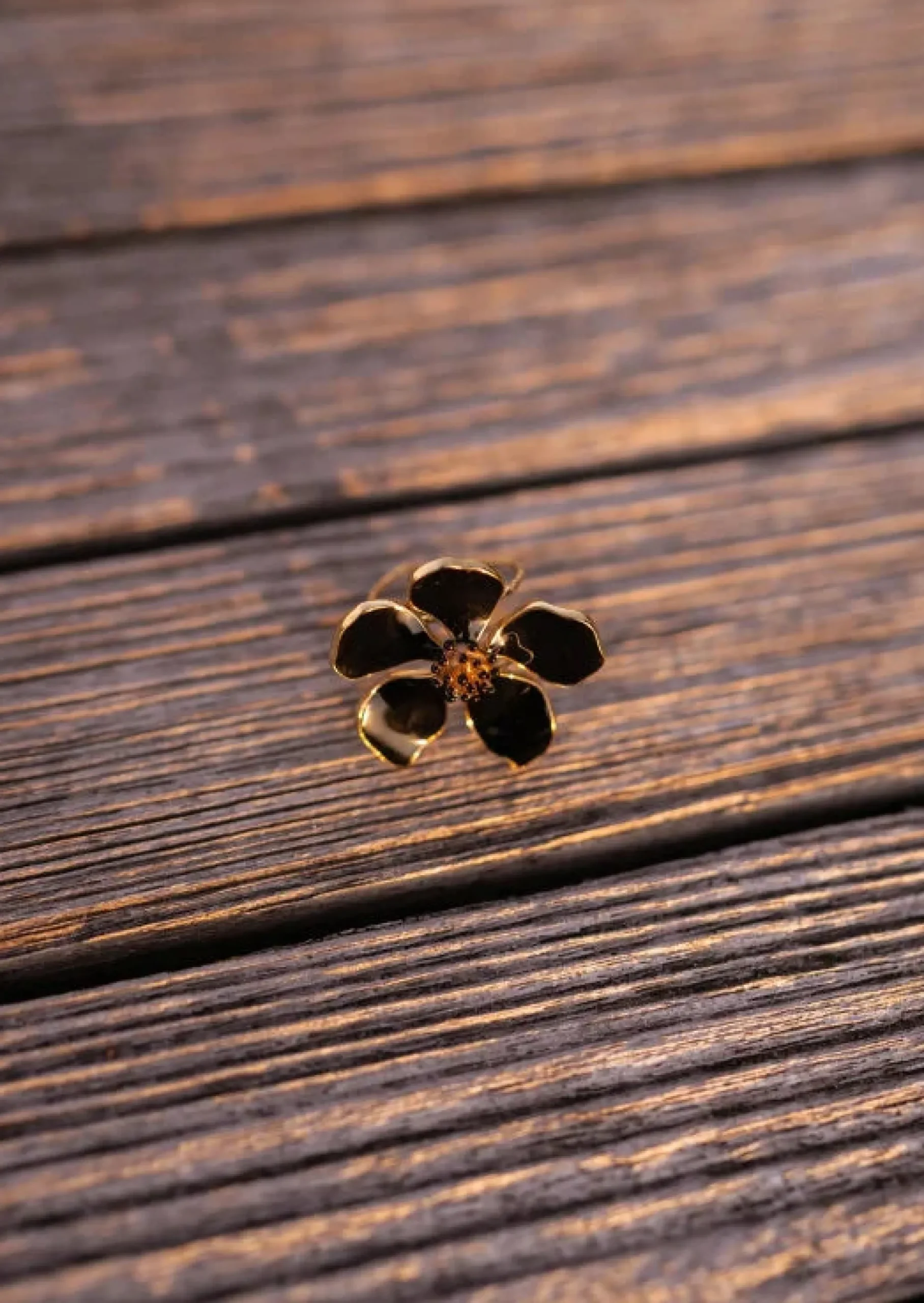 Cheap Bague Mima Dorée – Fleur Noire – Acier InodydableEasy Clothes Bagues