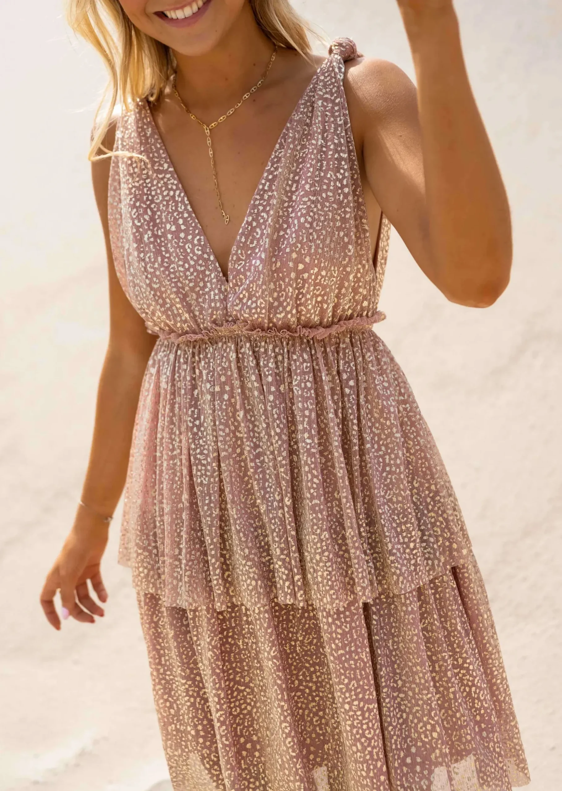 - Décolleté profond à l’avant et à l’arrière de la robe