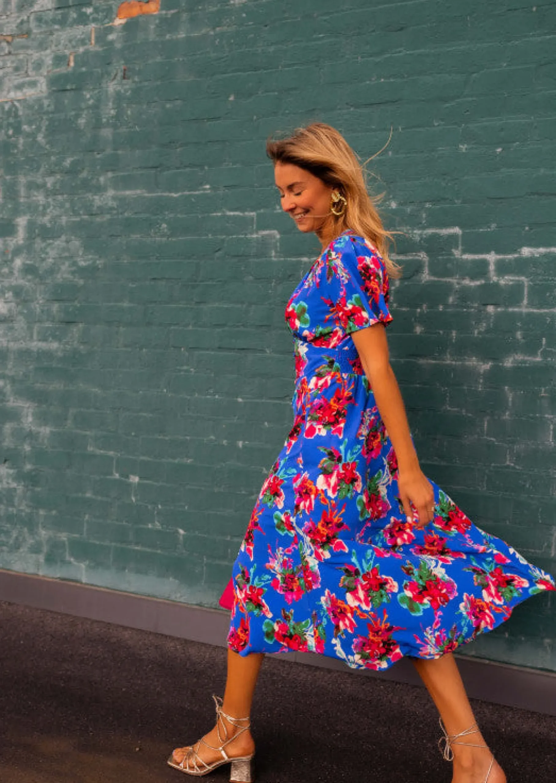 Clearance Robe Dana bleue à fleurs | Robe fendue à fleurs | Prêt-à-porter en ligne | Easy Clothes Femme Robes