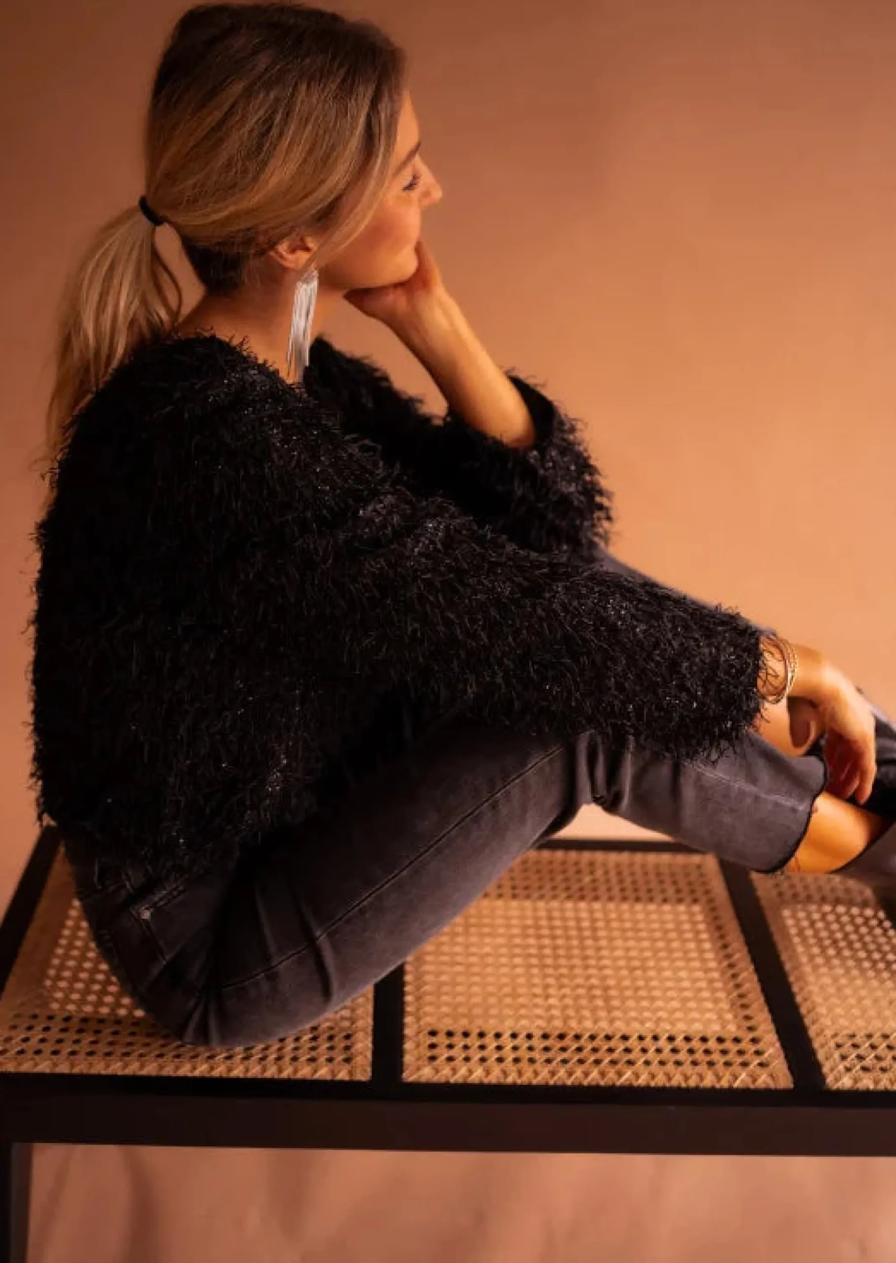 - Fils noirs sur l’ensemble de la blouse