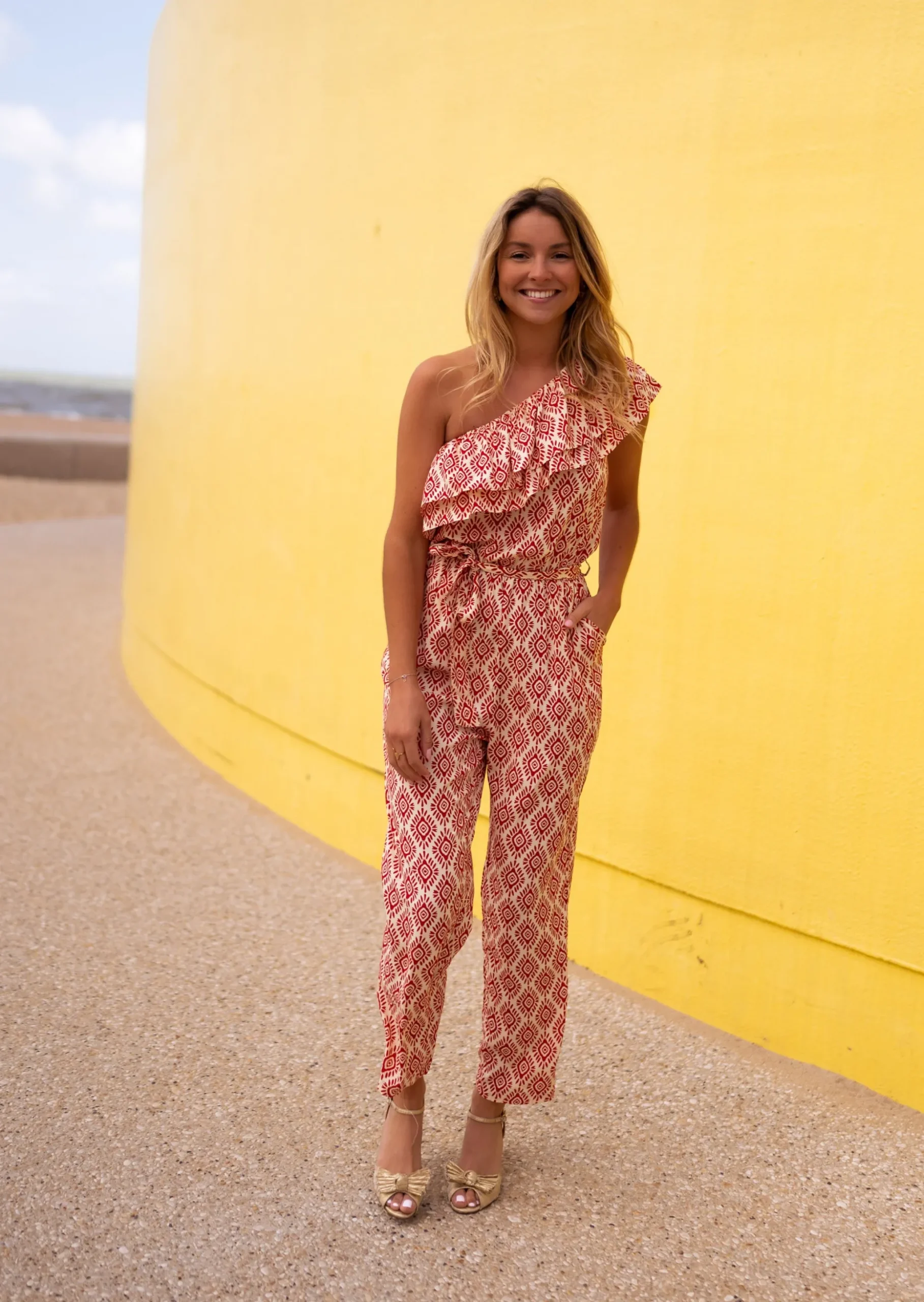 Fashion Combinaison Lara à motifs rouge | Combinaison à volants | Prêt-à-porter en ligne | Easy Clothes Femme Combinaisons