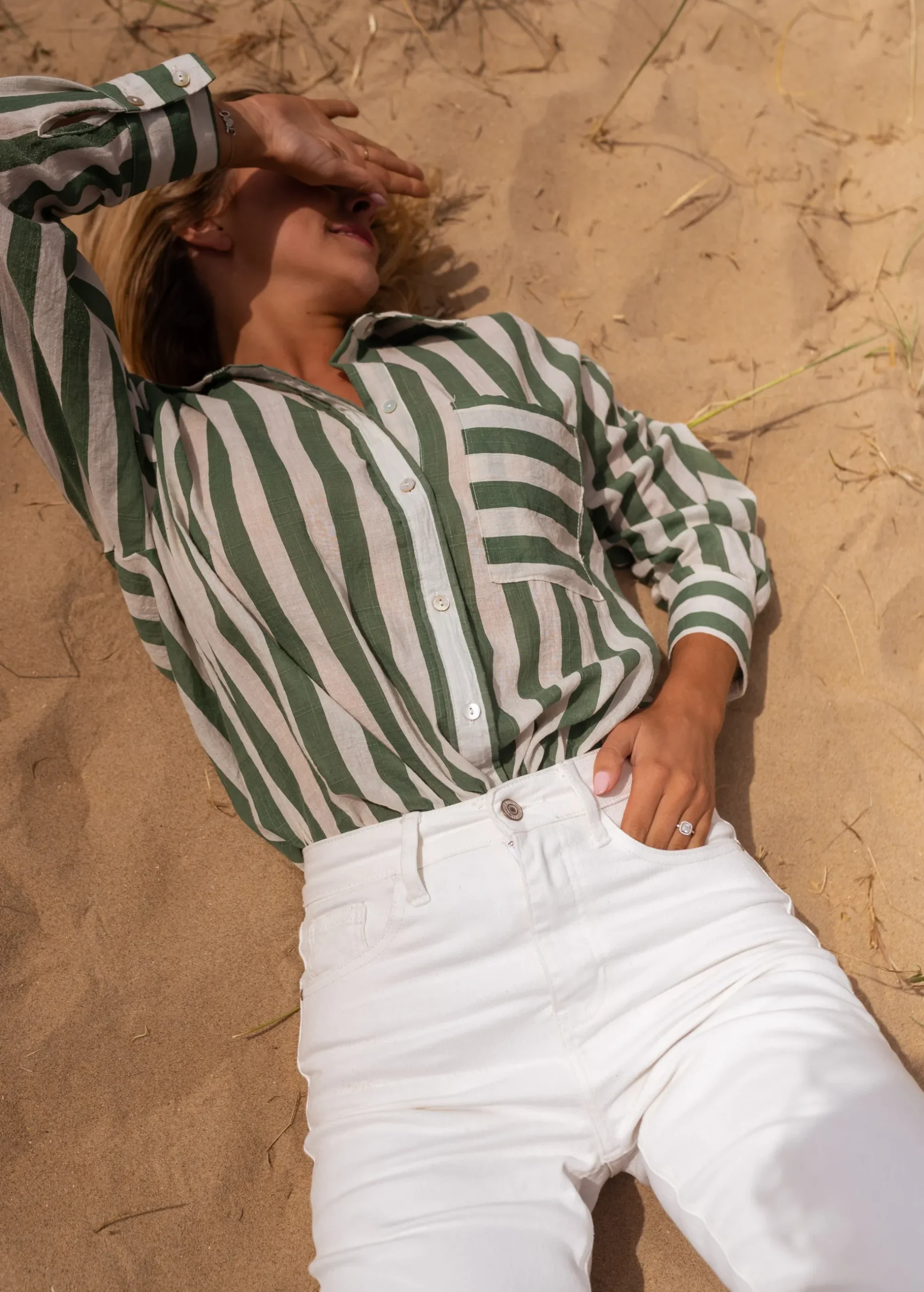 Hot Chemise Benza à lignes vertes | Chemise ample lignée | Prêt-à-porter en ligne | Easy Clothes Femme Chemisiers & Blouses
