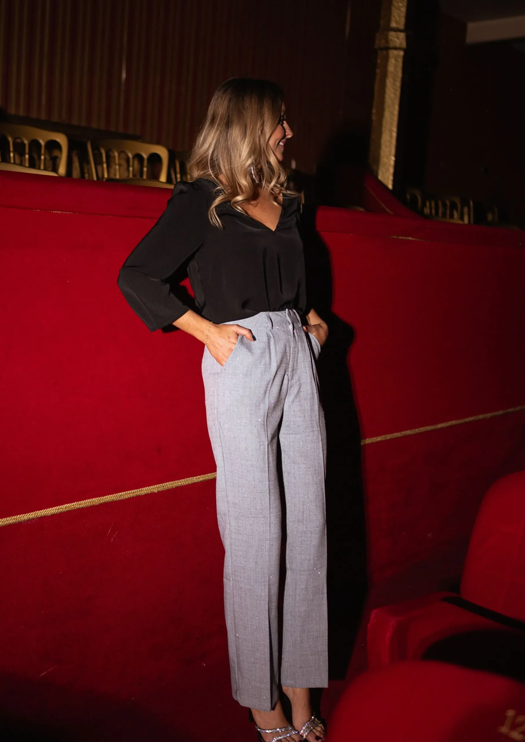Hot Pantalon Loan – gris à strassEasy Clothes Femme Pantalons