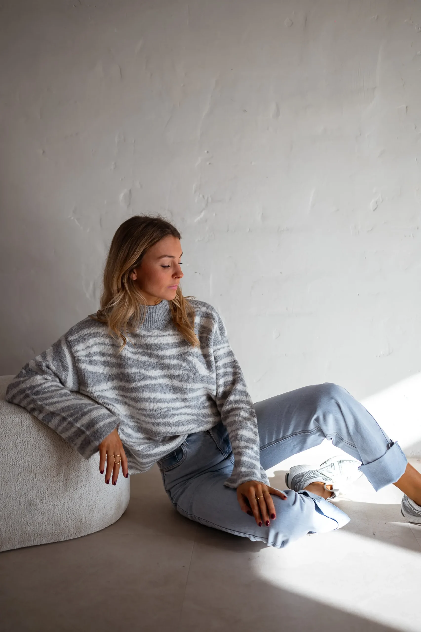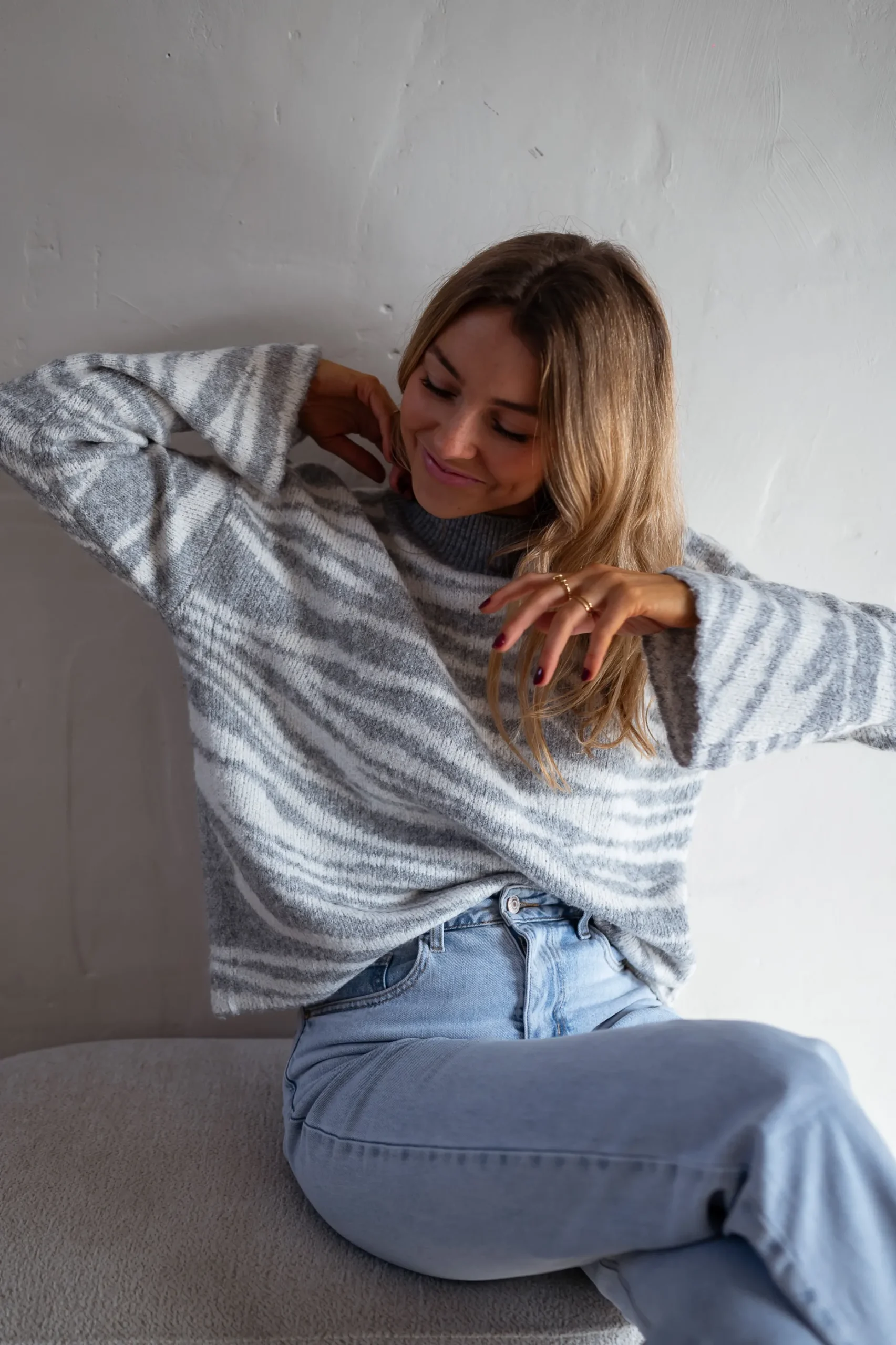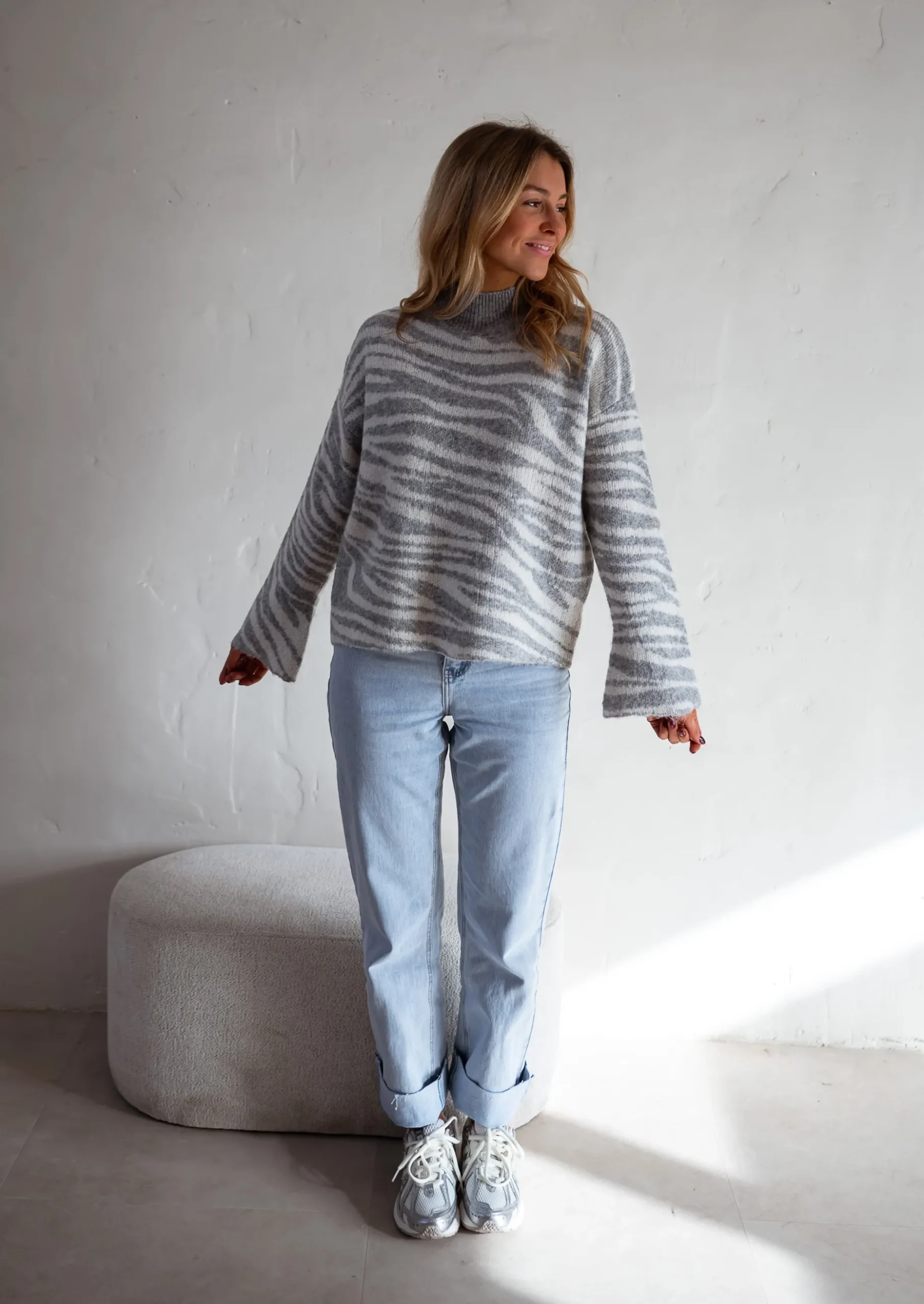 New Pull Lony – Zèbre – Écru & Gris – Vêtements FemmeEasy Clothes Femme Pulls & Gilets