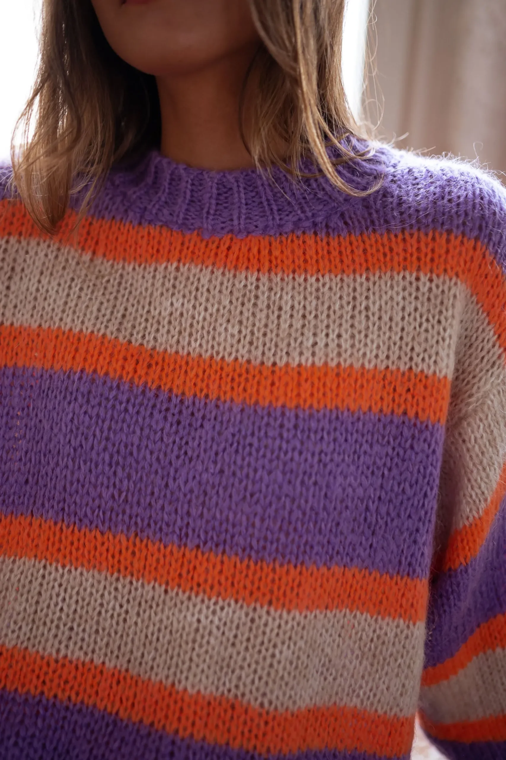 - Lignes oranges, mauves et écrues