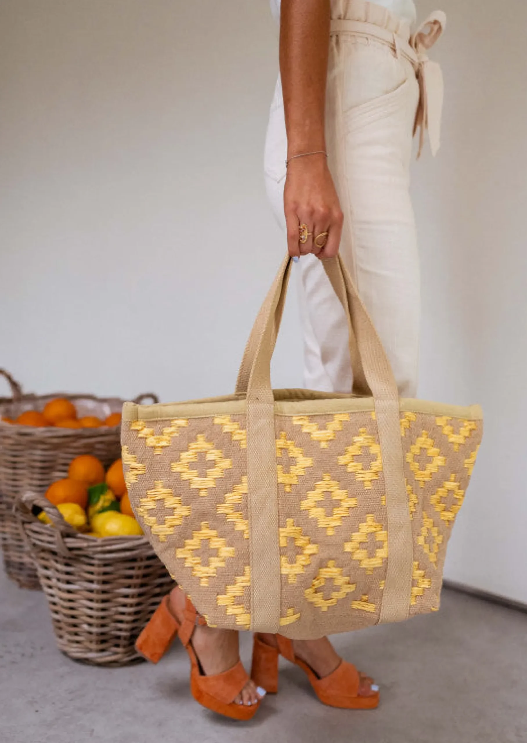 - Motifs en rafia jaune