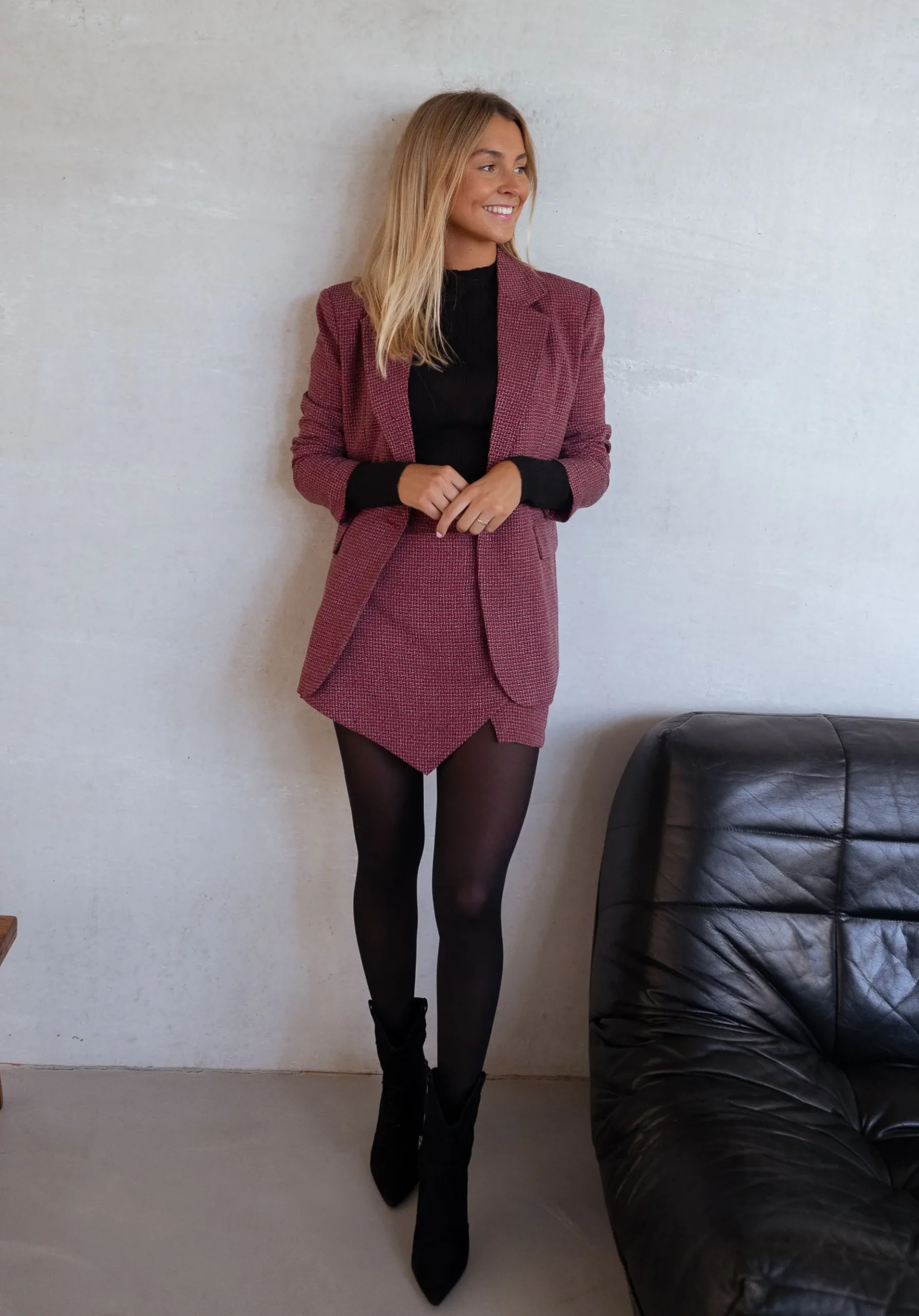 - Effet drapé à l’avant de la jupe