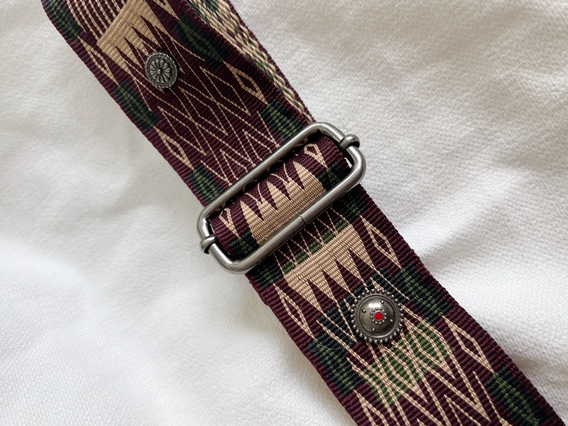 - Empiècement sur la sangle avec perles rouges