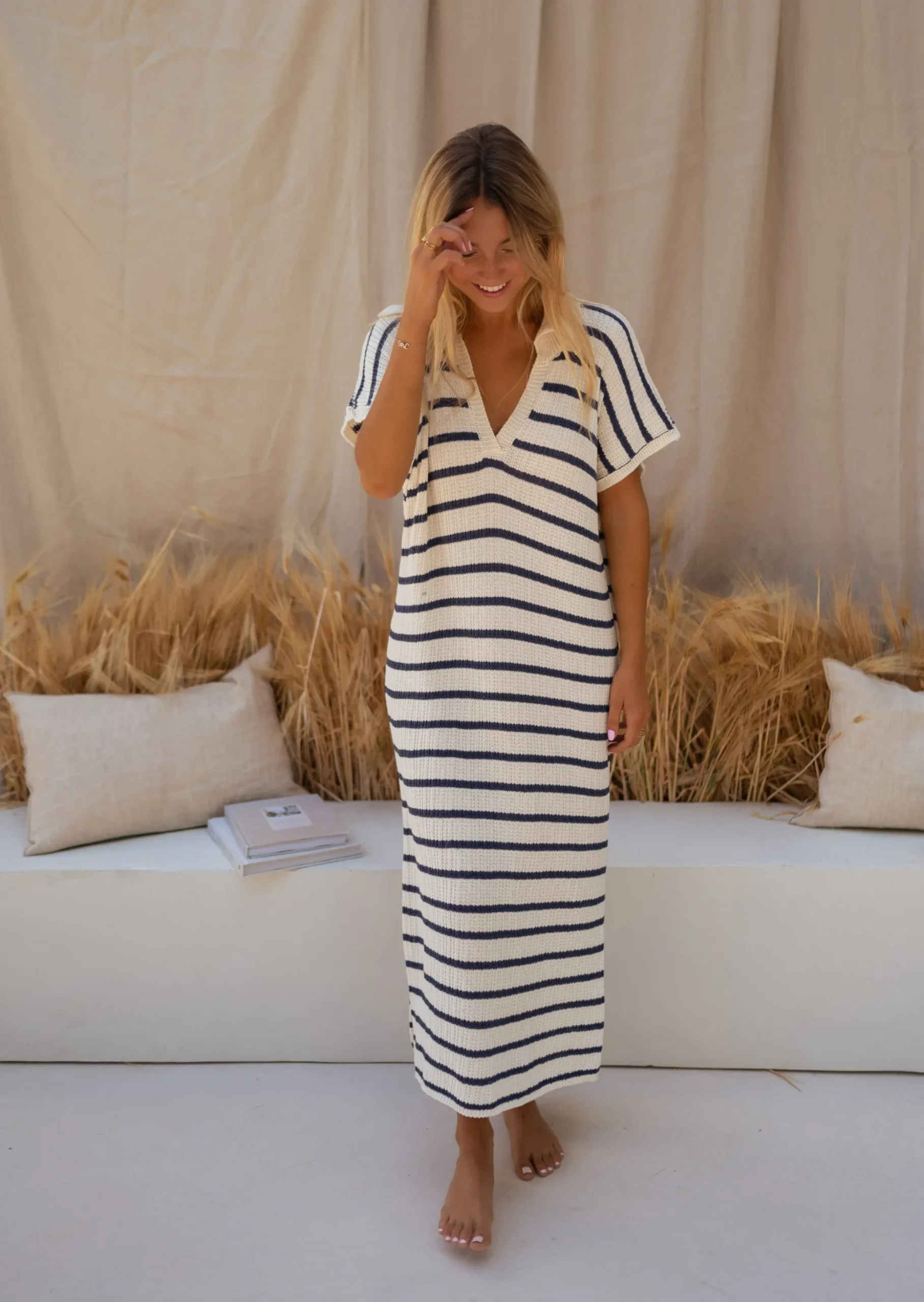 Discount Robe Soam – Lignes Bleues & Écrues – Effet MailleEasy Clothes Femme Robes