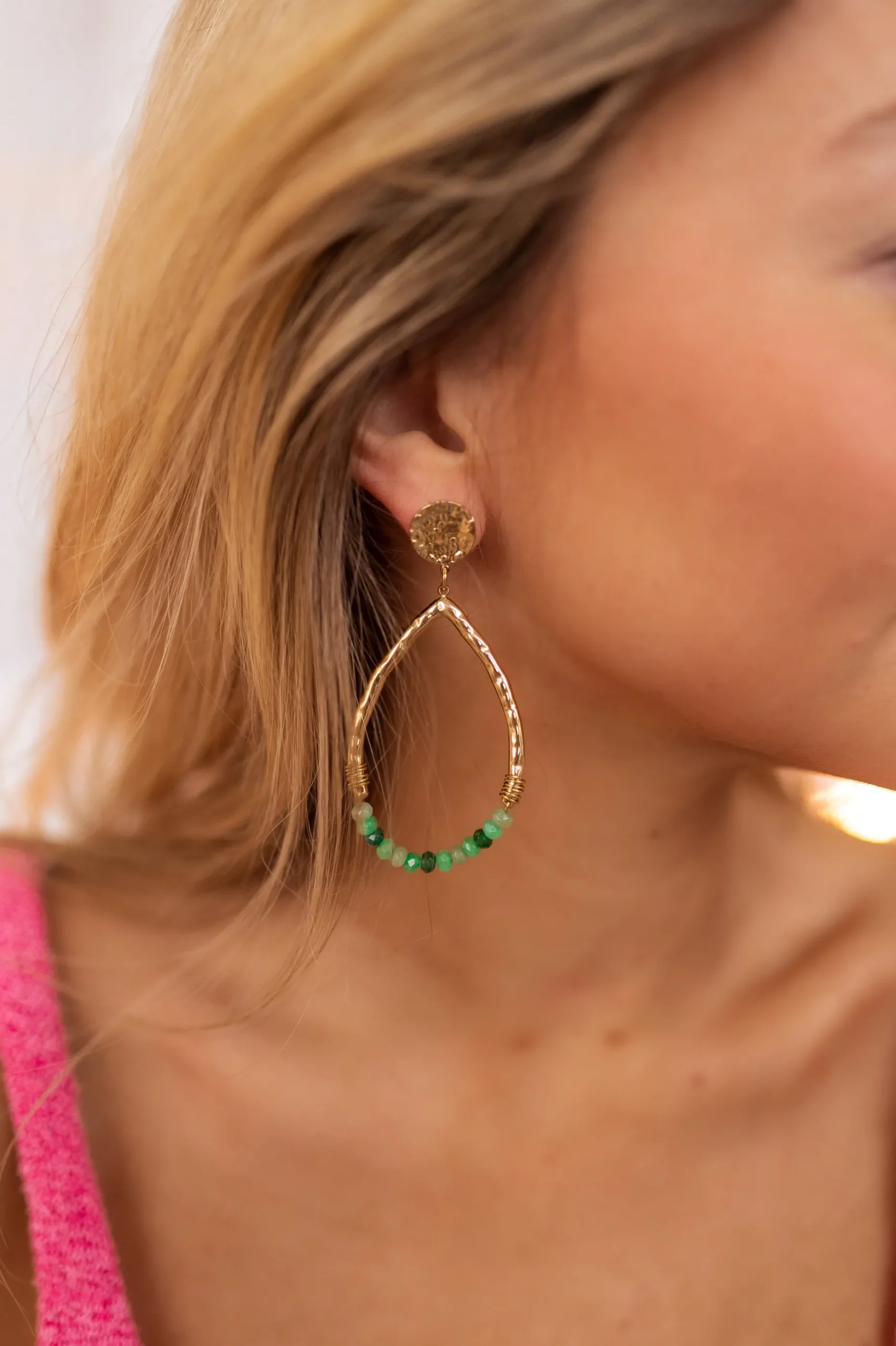 Fashion Boucles d’oreilles Klaro dorées | Boucles d’oreilles à perles vertes | Prêt-à-porter en ligne | Easy Clothes Boucles d’oreilles