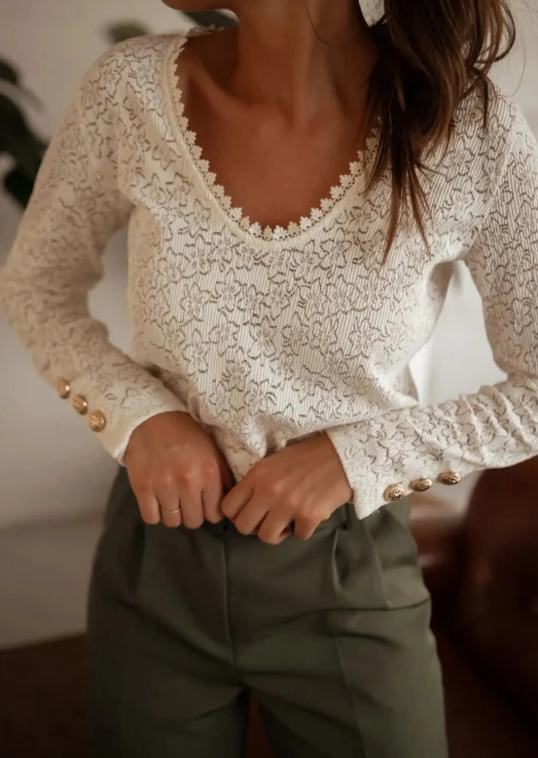 Online Blouse Balo – Écru – En Dentelle – Boutons DorésEasy Clothes Femme Chemisiers & Blouses