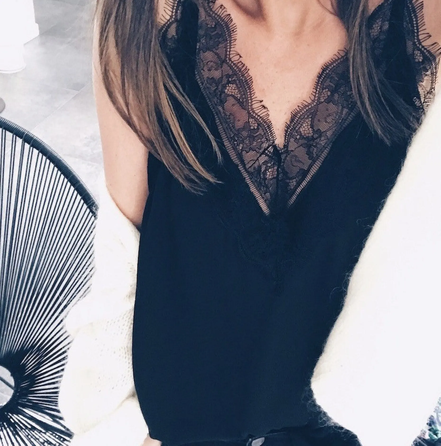 - Col V avec finitions dentelle