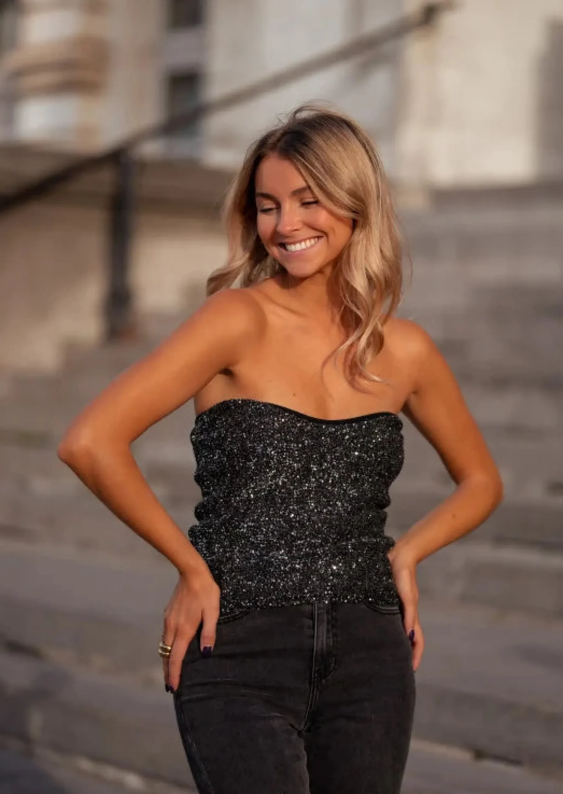 Shop Top Vincent Noir – Paillettes Argentées – BustierEasy Clothes Femme Tops & T-shirts